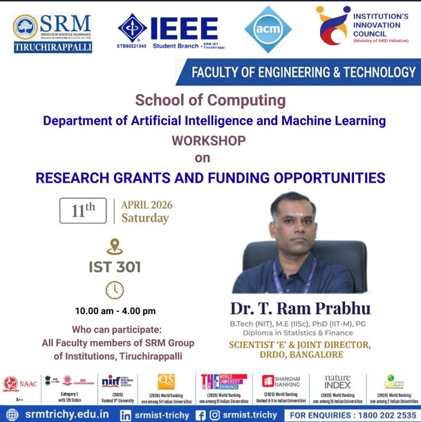 SRM Institute of Science and Technology, Tiruchirappalli offers a research-intensive and future-focused learning environment designed to create an innovators, leaders, and global professionals. The National Institutional Ranking Framework (NIRF) places SRMIST among the top 11 universities and 22nd overall in India. It is a benchmark for academic excellence and industry relevance.