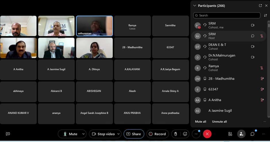The Department of Computer Science and Engineering, SRM Institute of Science and Technology, Tiruchirapalli Campus is conducting a 21-day Online International Faculty Development Program on Data Science Tools from July 12th 2023 to 1st August 2023. The inaugural ceremony, followed by Day-1 session was held on 12.07.2023 at 6.45 pm. The chief guest Dr. Prof. Jai Ragunathan, Assistant Head, School of Ocean Technology Memorial University of Newfoundland, Canada inaugurated the programme by lighting the lamp. Around 550 participants across the country attended the program. The Chief Guest discussed about the usage of Machine Learning algorithms for Data Science applications.