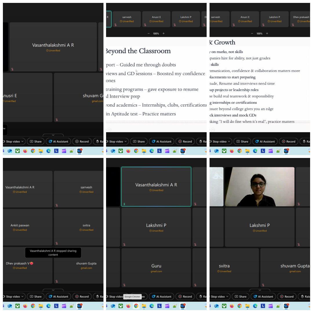 The Faculty of Science and Humanities at SRMIST, Tiruchirappalli, organized the second session of the Alumni Talk series aimed at preparing students for their professional journey. The resource person, Ms. A.R. Vasanthalakshmi, an accomplished alumna currently working as a Tester at Accenture, shared valuable insights into career readiness and skill development. Participants gained practical tips for skill enhancement, industry readiness, and professional growth. The session encouraged students to take a proactive approach toward learning and self-development. The event successfully connected alumni with current students, fostering a culture of mentorship and continuous improvement. It also strengthened the bond between SRMIST’s alumni community and the institution.