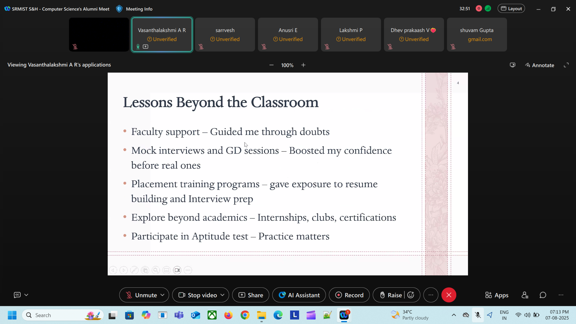 Th e Faculty of Science and Humanities, SRM Institute of Science and Technology, Tiruchirappalli hosted the Alumni Meet 2025 on October 25, 2025, at the 6th Floor Seminar Hall, bringing together our proud alumni, faculty members, and students for a heartwarming reunion. Highlights: • Welcome & Opening Remarks – Emphasizing the vision of the Alumni Association. • Address by Dean, Dr. D. Francis Xavier Christopher – Inspiring alumni to engage and contribute. • Departmental Updates – Recent achievements and initiatives shared by HoDs. • Alumni Sharing Session – Memories, experiences, and success stories. • Felicitation Ceremony – Honoring rank holders for academic excellence. • Closing Moments – Vote of Thanks, National Anthem, and a group photograph. The event celebrated achievements, rekindled connections, and strengthened the b ond between SRM IST and its alumni community.