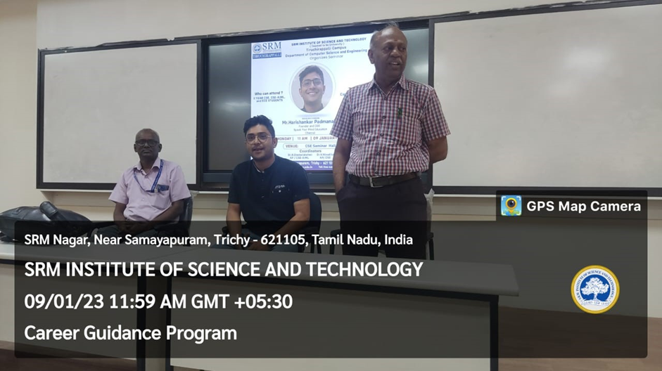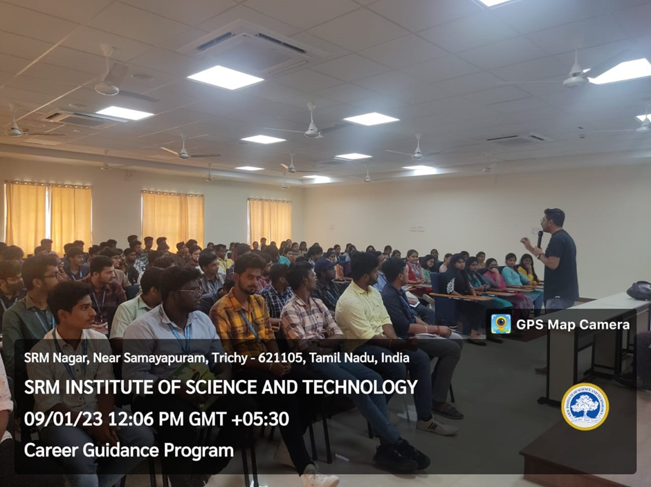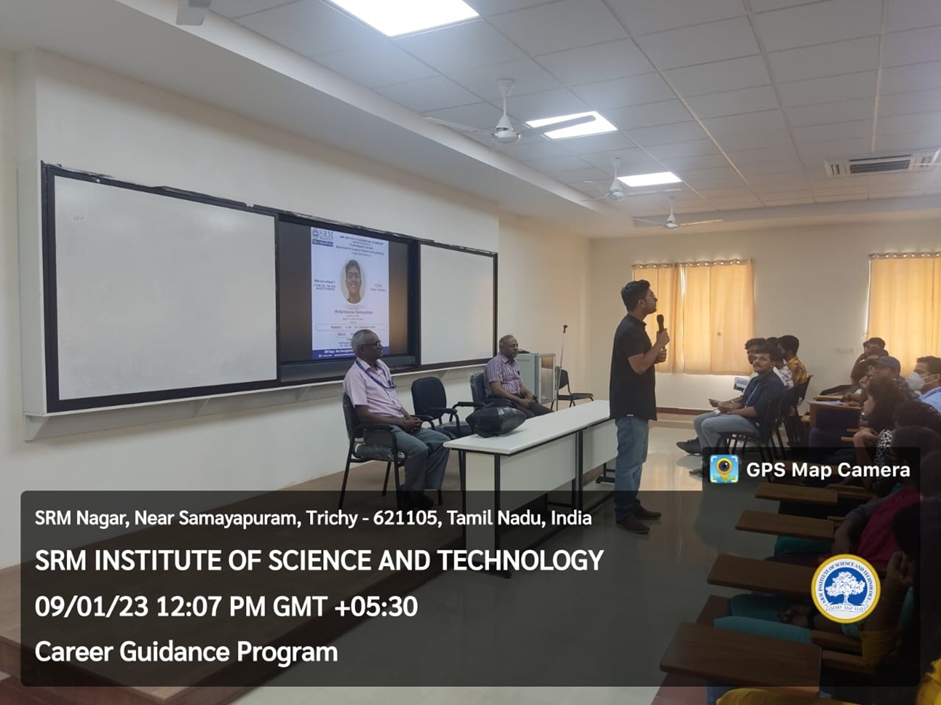 The Faculty of Engineering & Technology, SRMIST, Tiruchirappalli Campus organized a programme titled “Career Guidance -Explore Your Talents” for the benefits of B. Tech II Year (CSE, CSE-AIML & ECE) Students on 09.01.2023 (Monday) at the Seminar Hall at 11.00 AM. The Session was handled by Er. Harishankar Padmanaban, CEO and Founder of Speak Your Mind Education, Chennai. (Also Alumnus of SRM –IST Ramapuram)