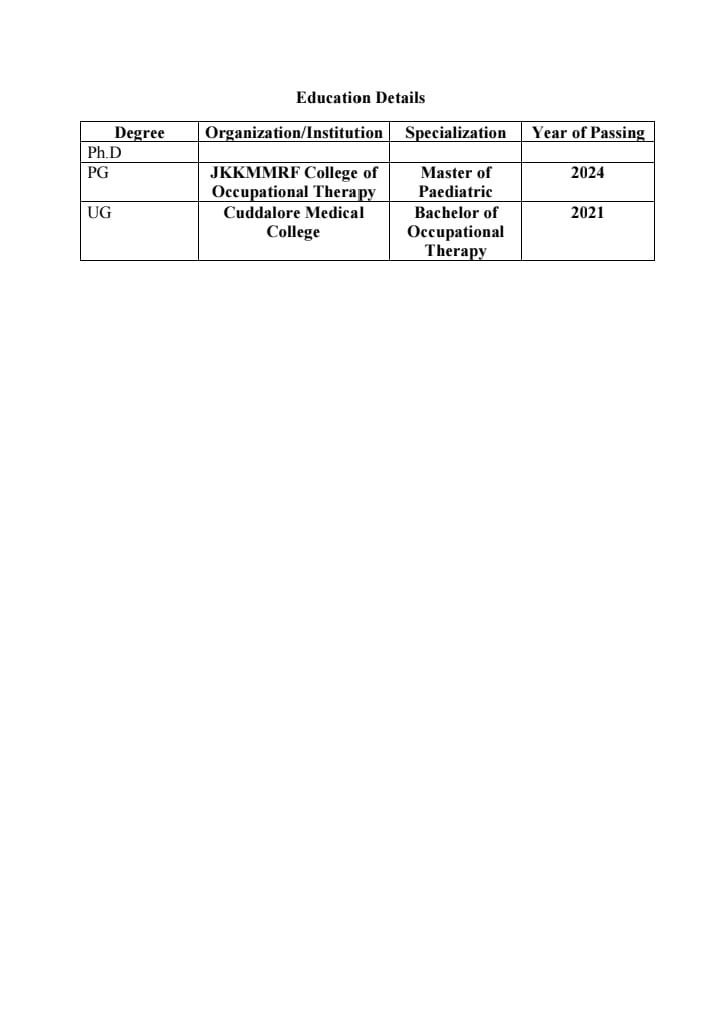 - presented poster on World Occupational Therapy day by Jkkm college of Occupational therapy
