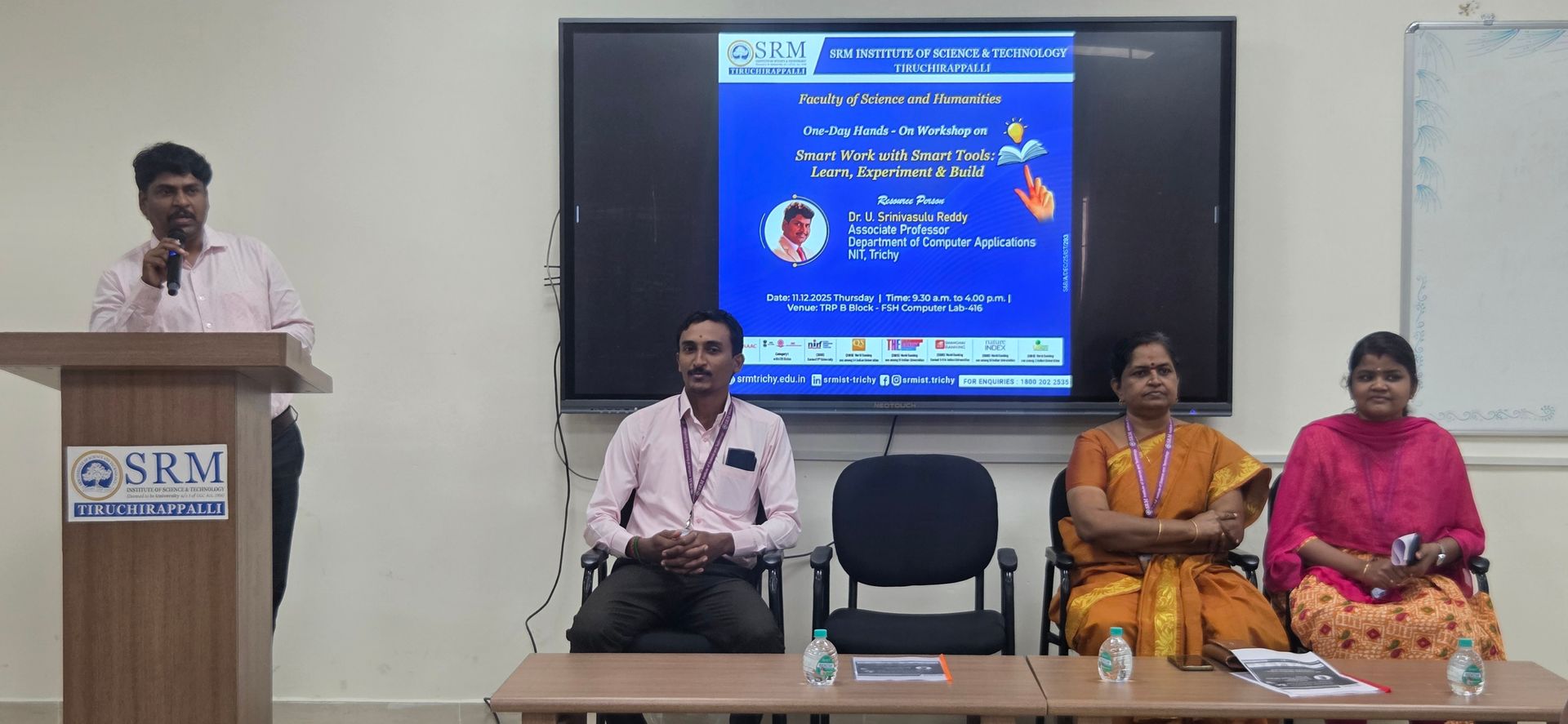 The Department of Computer Science and Applications, Faculty of Science and Humanities, successfully conducted a Hands-On AI Workshop titled “Smart Work with Smart Tools: Learn, Experiment & Build” on 11 December 2025.