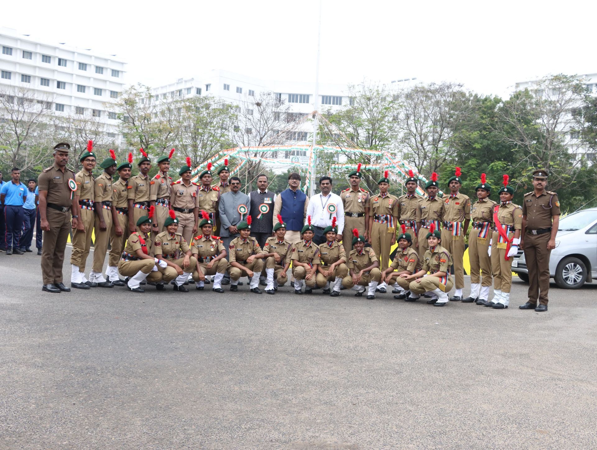 The 77th Republic Day was celebrated with great pride and patriotic fervor on 26th January at SRM Institute of Science and Technology. The celebration was organized in the university premises with enthusiastic participation from faculty members, students, NCC cadets, and administrative staff. The program commenced in the morning with the hoisting of the National Flag by the Chief Guest Lt.Col.R. Muruganatham, Indian Army, followed by the National Anthem. The entire gathering stood in solemn respect, marking the significance of the day and remembering the sacrifices of our freedom fighters. A major highlight of the celebration was the impressive March Past performed by the NCC cadets. The cadets, dressed in their immaculate uniforms, displayed remarkable discipline, coordination, and dedication. Their synchronized movements and confident commands reflected rigorous training and strong team spirit. Adding grandeur to the occasion, the cadets presented a Special Drill Performance, which captivated the audience. The drill demonstrated precision, unity, and professionalism, showcasing the cadets’ physical fitness and commitment to excellence. The performance was met with loud applause and appreciation from the dignitaries and attendees. In his address, the Chief Guest emphasized the importance of constitutional values, unity in diversity, and the responsibility of youth in nation-building. The speech inspired students to uphold the principles of justice, liberty, equality, and fraternity enshrined in the Constitution of India.The celebration at SRM Institute of Science and Technology truly reflected patriotic spirit, discipline, and collective pride, leaving everyone motivated and inspired to serve the nation with dedication and integrity.