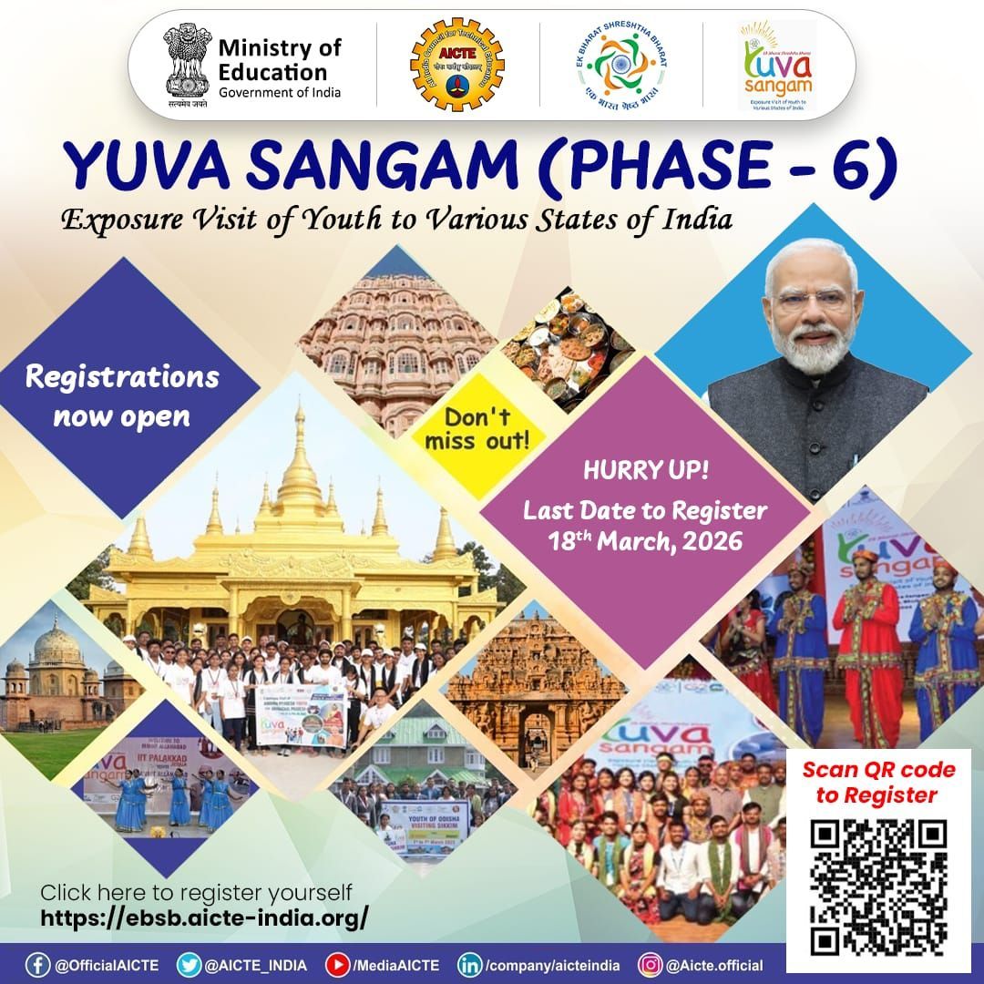 After the resounding success of the previous five phases, the Ministry of Education has officially launched Yuva Sangam Phase-VI. This phase will continue to provide multi-dimensional exposure to our students under the five thematic pillars: